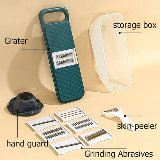 - An ergonomically designed premium manual vegetable salad chopper. The blade allows flexibility to easily cut, slice, chop, shred various shapes and sizes of fruits and vegetables such as onions, mushrooms, cucumbers, carrots, potatoes, tomatoes, ginger, garlic, cheese, and more.